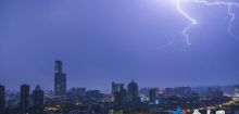 閃電劃破鎮(zhèn)江夜空 強(qiáng)對(duì)流天...